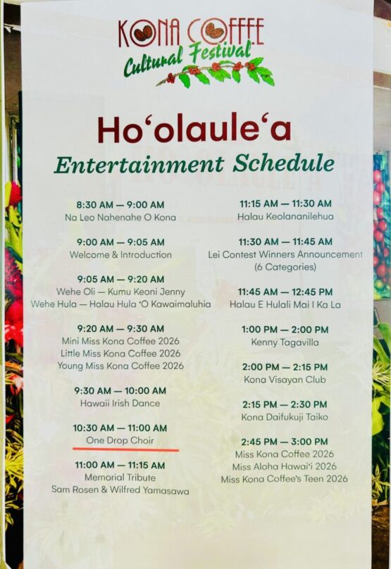 「KONA COFFEE CULTURAL FESTIVAL HO‘OLAULE‘A」 のステージにて、
